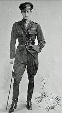 At his arrival in Persia, he was welcomed by his officers as his reputation for the Rasputin assassination had made him popular.[22] He served ten weeks under General Nikolai Baratov who headed the 1st Caucasus Cossack Corps on the Caucasus Front in the Persian city of Kazvin.[24] Within two months Nicholas II was forced to abdicate ending the rule of the Romanov dynasty. General Baratov asked Dimitri to leave since there were rumblings from the lower ranks, and his safety could not be guaranteed. Ronald Wingate entertained Grand Duke Dmitri Pavlovich when he passed through Najaf. The Provisional Government invited him to return to Russia, but he declined.[21] Lacking both friends and money, he lived precariously. In the summer of 1917, Dimitri left the Russian occupation zone moving to Tehran.[25] Dimitri stayed briefly with General Meidel, then the head of the Persian Cossack Division, before being taken in by the British Minister to Tehran, Sir Charles Murray Marling, and his wife, Lucia. Through 1917 and most of 1918 Grand Duke Dimitri lived with the Marlings.[26]