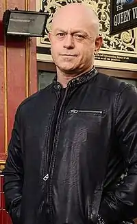 The character of Grant Mitchell has been hailed as "one of the most iconic and popular in the history of soap".[19] In a study by the Stirling Media Research Institute called Men Viewing Violence, participants branded Grant "a fascinating character" because of his complexity and likened him and Phil to a soap operatic version of the notorious East End criminals, the Kray Twins.[27] He has become one of EastEnders biggest sex-symbols — described by the magazine, Women Republic, as "an ideal bit of rough... the antithesis to the pretty boys who spend longer in front of the mirror than we do."[28] He was also voted the second most hunky man in British soap by gay readers of the magazine, attitude, who described him as "a dashing big, bad bully boy."[29] In addition, Grant and Phil were voted as the second most popular King Of Soaps in a Channel 4 poll in 2002 and Grant was voted as one of the Top Ten TV Hard Men in a separate poll.[30]