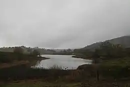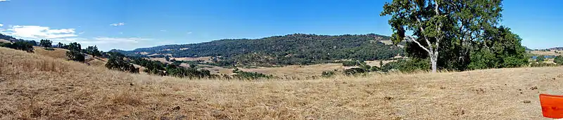 Grant Ranch Park is situated in the Diablo Range, near Mount Hamilton. Elevations range from about 1,400 feet (427 m) in Halls Valley to peaks over 2,800 feet (853 m) on the Park's eastern edge.[4] This upward gradient leads to even higher peaks in the crest of the range and to Mount Hamilton itself at 4,209 feet (1,283 m). The western slopes of Mount Hamilton drop into Smith Creek which forms the eastern boundary of the Park.