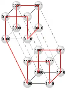 The code also forms a Hamiltonian cycle on a hypercube, where each bit is seen as one dimension.