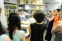 Since 2011, the Songbook Foundation has presented the following exhibits: "The Great American Songbook" (2011), "G.I. Jive: The Music and Entertainers of World War II" (2012), "Blast from the Past: Roaring Hot '20s Jazz" (2013), "A Change Is Gonna Come: 1960s Broadway Musicals" (2014), "Gus Kahn: The Man Behind the Music" (2015), and "The Great Indiana Songbook: Two Centuries of Hoosier Music" (2016). The exhibit now on display is "Ella Sings the Songbook", celebrating Ella Fitzgerald's 100th birthday and commemorating her more than fifty-year career, much of which was spent performing music from the Great American Songbook. In particular, the exhibit highlights the series of eight albums of Songbook music sung by Ella under the direction of Norman Granz and issued by Verve Records.[4] These exhibits focus on different time periods, styles, and artists.[5] In addition to the interactive display which houses clips and short biographies of over four decades of singers and songwriters, artifacts from the Songbook Archives that relate to the music and musicians being highlighted in the Songbook Gallery exhibits are displayed.[6]