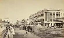 During its heyday, the hotel was known variously as the "Jewel of the East"[1] and the "Savoy of the East"[4] and was prosaically described by Kipling in his short story City of Dreadful Night.[1] It was said of the hotel in 1883 that "a man could walk in at one end, buy a complete outfit, a wedding present, or seeds for the garden, have an excellent meal, a burra peg (double) and if the barmaid was agreeable, walk out at the other end engaged to be married".[6] The hotel has housed many famous personalities including Nikita Khrushchev and Nikolai Bulganin,[4] Elizabeth II,[1] Mark Twain,[4] Dave Brubeck[7] and possibly Ho Chi Minh.[1] The management of the hotel was taken over by the state government in the 1970's and continued operations for over 30 years.[1] The state sold it to the private group The LaLiT Hotels, Palaces and Resorts in 2005.[4] Until its closure for restoration in 2005, the hotel was the longest continuously operating hotel in Asia.[8]