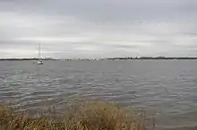 In 1929, the city bought Crooke's Point and adjacent land and started to build a public park.[7] Due to the Great Depression and World War II, the work was delayed and the park could not be opened to the public until 1949. An incinerator was operated on the site of the park from 1926 to 1941, and over 197,000 tons of toxic residue from it remained at the site.[8] A pioneering rocket launch in 1933 led the American Institute of Aeronautics and Astronautics to commemorate the location as a "Historic Aerospace Site".[9] Great Kills Harbor, located within the park, was created in the 1940s by expanding and reconnecting Crooke's Island to the rest of Staten Island, using landfill and dredge material.[10]