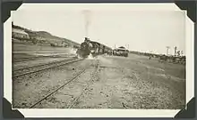 Work did not get underway until September 1906 but proceeded rapidly, with temporary crossings of the dry river beds being made ahead of bridge construction so track laying was not delayed. In this arid region that was not a problem for most of the time, and explains the large time difference between the arrival of the first train and the official opening of a section.