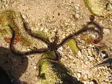 Great Palm Island's rich volcanic soil supports tropical flora such as mangroves, eucalypt forest, rainforests, hoop pine, mango, banana, pawpaw (papaya) and wild plum trees.[5][27] The surrounding bays have diverse marine fauna, including coral trout, crayfish and coral reefs.[5]