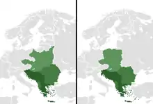 Encouraged by the British Foreign Office, together with the Polish-Czechoslovak confederation, they were to form a pro-Western organisation of states between Germany and the Soviet Union.[1][6][7] Both governments-in-exile agreed to form a political, economic and military union, with the motto "The Balkans for the Balkan People".[1]