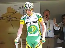 In 2001 LeMond was one of the first professional cyclists of note, and the only former Tour champion, to openly express doubts over the legitimacy of Lance Armstrong's three-consecutive Tour successes.[5][6][7] He consistently questioned the relationship between riders and sports doctors like Italian Michele Ferrari. In 2006 LeMond noted that the extent of doping in the sport could not occur without complicity from the body that regulates international professional cycling, and he accused the Union Cycliste Internationale of serious doping-related corruption.[8][9] In an open letter in December 2012 he asserted that UCI's Pat McQuaid and Hein Verbruggen were central to the problem in professional cycling.[10] LeMond claimed professional cyclists are treated as "lab rats," while the doping facilitators escape harm or responsibility. He told an audience at Coventry University, "The doctors, the management, the officials, they're the ones that have corrupted riders. The riders are the only ones that pay the price".[8] LeMond's statements have brought him into conflict with some of the sport's elite, including the UCI's McQuaid and Verbruggen, the Trek Bicycle Corporation,[11] and riders Lance Armstrong,[12] Floyd Landis, and Alberto Contador. In the interests of reforming the sport, LeMond offered to serve as president of the UCI, taking over the position of former president Pat McQuaid.[13][14]
