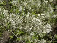 It usually grows to about 3 metres in height and has prickly leaves which are deeply lobed and can be up to 50 mm long and 30 mm wide. The scented white, cream or occasionally pale-pink flowers are most abundant in the winter or spring but can occur sporadically throughout the year.[1][2]