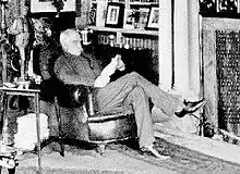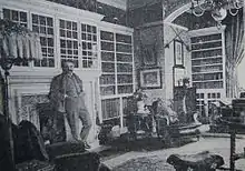 Arthur Sullivan visited Grim's Dyke with his nephew, Herbert, on 27 May 1893.[8] They stayed at the house for three days while Sullivan worked with Gilbert to finalise Utopia, Limited.[9] At the house, Gilbert had a vinery, apiary, orchards and a farm, with Jersey cattle, horses, pigs and fowl.[1] He also kept a variety of exotic animals including monkeys, lemurs, a lynx and many others.[10] Lady Gilbert designed the 30 acres of ornamental gardens at the house, which remain as the hotel grounds.[11] After Gilbert's death in 1911, Lady Gilbert and the Gilberts' companion, Nancy McIntosh, continued to live there until Lady Gilbert's own death in 1936.[10][12]
