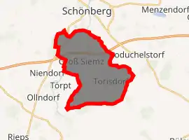Groß Siemz is a village and a former municipality in the Nordwestmecklenburg district, in Mecklenburg-Vorpommern, Germany. Since May 2019, it is part of the new municipality Siemz-Niendorf.