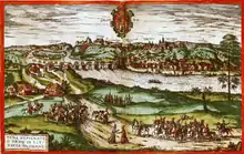 Jews began to settle in Grodno in the 14th century after the approval given to them by the Lithuanian Gran Duke Vytautas.[11] During the next years, their status had changed several times and in 1495 the Jews were deported from the city and banned from settling in Grodno (the ban was lifted in 1503). In 1560 there were 60 Jewish families in Grodno. They were concentrated on the "Jewish street" with their own synagogue and "hospital". In the year 1578 the great synagogue of Grodno was built by rabbi Mordehai Yaffe (Baal ha-Levush). The synagogue was severely damaged in a fire in 1599.