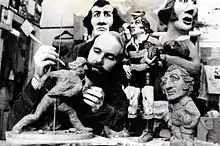 A Grogg is a caricature figure made by the World of Groggs, a ceramics company established by John Hughes in 1965, in Trefforest near Pontypridd, Wales. Most Groggs are 9 inches tall or less and are made of a type of clay called grog. Groggs are usually made of popular Welsh rugby players,[1] Welsh celebrities[2] and the occasional non-Welsh celebrity.[3][4] Whenever possible the person who is "grogged" is presented with the first Grogg produced.[5] They are moulded and painted by hand and a Grogg can take many weeks from the master copy being made to the first one being painted.