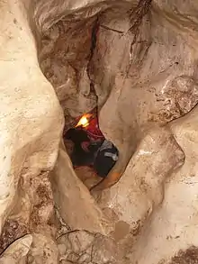 Access to the cave is on the right side slope of the Brenta River, near Selva (Grigno), in Valsugana. Once you reach Grigno, you cross the river, turning right, and there is parking where you begin the path leading to the opening. From the parking area you take a path that initially rises, and then crosses the mountain; in just over 30 minutes it was at the entrance of the cavity (470m above sea level).[1]