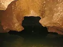 The lake Pasa , one of the largest lakes in the cave - the "labyrinth or swallow" spiral section forming a small labyrinth