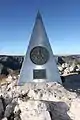 A stainless steel pyramid marks the summit. It was erected by American Airlines in 1958 to commemorate the 100th anniversary of the Butterfield Overland Mail, a stagecoach route that passed south of the mountain. One side of the pyramid has the American Airlines logo. The second side displays a U.S. Postal Service tribute to the Pony Express Riders of the Butterfield Stage. The third side displays a compass with the logo of the Boy Scouts of America. A summit register contained in a metal ammunition box is located at the base of the pyramid.