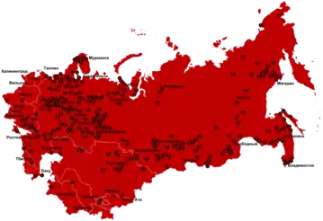 Gulags (Russian: ГУЛаг, acronym of the Russian words Glavnoe upravlenia lagerei, meaning in English: Main Administration of Camps) were concentration camps operated under the Soviet Union officially from April 25, 1930 until their abolishment by an MVD order on January 25, 1960; although, unofficially, political and criminal prisoners continued to endure forced labour internment until the late 1980s.[3] Originally founded by Vladimir Lenin, the Gulag system continued to expand before reaching its peak during Stalin's rule from the 1930s to the early 1950s. At the height of the USSR, there were 478 gulags, including 53 independent corrective labour colonies (the most common prison system in Russia involving both penal detention and compulsory work) in addition to a vast web of 425 corrective labour colonies spread out across Russia and its territories; this was not including a number of preexisting prisons operated by the State.