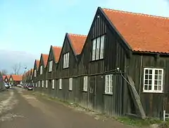The Gunboat Sheds owe their existence and name to the so-called gunboats which were built after the Danish naval fleet had been captured at the Holmen Naval Base by the Royal British Navy on 21 October 1807. The gunboats were used in the last stage of the English Wars, now known as the Gunboat War. The small gunboats were employed against the conventional Royal British Navy. Built to provide on-land protection for the gunboats when they were not in use, the sheds were mainly built in around 1830. Each shed could accommodate two gunboats.[1]