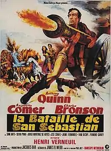 Guns for San Sebastian (French: La bataille de San Sebastian) is a 1968 action-adventure film based on the 1962 novel A Wall for San Sebastian, written by Rev. Fr. William Barnaby "Barby" Faherty, S.J.[1][2][3] The film is directed by Frenchman Henri Verneuil, it stars Anthony Quinn and Charles Bronson. The score is by Ennio Morricone. Filming took place in Sierra de Órganos National Park in the town of Sombrerete, Mexico [4] It was made as a co-production between France, Italy, Mexico, and the United States.