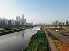 Dorimcheon, on the other hand, has been extensively redeveloped and built over. For most of its course with Seoul and in Guro district in particular it runs through artificially created channels beneath or alongside Seoul Metro Line 2. Towards Sindorim station the stream reverts to a natural state and the surrounding area has been restored to provide habitats for wildlife and recreational facilities for the public.