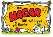 Hägar the Horrible is the title and main character of an American comic strip created by cartoonist Dik Browne, and syndicated by King Features Syndicate. It first appeared in February 1973, and was an immediate success.[1] Since Browne's retirement in 1988 (and subsequent death), his son Chris Browne has continued the strip.[2] As of 2010, Hägar is distributed to 1,900 newspapers in 56 countries and translated into 12 languages.[3] The strip is a caricature commenting on modern-day life in the United States through a loose interpretation of Viking Age Scandinavian life.