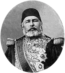 Hüseyin Avni Pasha (1820 – 15 June 1876) was an Ottoman governor-general and statesman.[1] He was Grand Vizier of the Ottoman Empire from 15 February 1874 to 26 April 1875.[1] He was killed by Çerkess Hassan[2] the younger brother of Neşerek Kadın Efendi, who accused him of the murder of Ottoman Sultan Abdülaziz, on 15 June 1876 during a cabinet meeting of Ottoman Sultan Murad V at the residence of Midhat Pasha near Beyazıt in Fatih, Istanbul. The foreign affairs minister Mehmed Rashid Pasha was also killed in the attack.