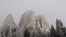 The Hăşmaş Mountains (Romanian: Munții Hășmaș; Hungarian: Hagymás-hegység), are limestone and sandstone massifs located in Romania in the Romanian Carpathian Mountain Range. The ranges include many cliffs and gorges, such as the Bicaz Gorge and the Panaghia Cliff.
