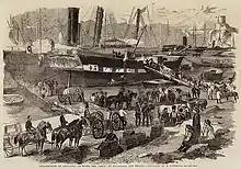 In addition, the British were able to burn two warehouses holding oil, soldiers' clothing, ammunition, and naval stores, including cables, blocks, hawsers, hemp, and the like.[23]