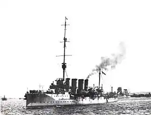 HMS Bristol was a Town-class light cruiser built for the Royal Navy in the first decade of the 20th century. She was the lead ship of the five in her sub-class and was completed in late 1910. The ship spent part of her early career in reserve before she was transferred to the 4th Cruiser Squadron (4th CS) of the North America and West Indies Station in mid-1914. Bristol was briefly deployed to Mexico during the Mexican Revolution to protect British interests there.