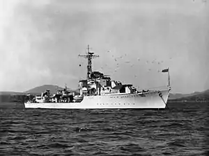She formed part of the 14th (later 1st) Destroyer Squadron for service in the Mediterranean.[6] She saw service, along with other Royal Navy ships in preventing illegal immigration into Palestine in 1947.[7]