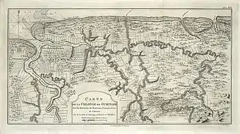 Emerald, Pandour, and Drake then pushed up the river, sometimes in less water than the frigates required to float properly, until on 5 May they arrived close to the forts Leyden and Frederici. The British landed a detachment of troops under Hughes some distance away, which marching under the cover of the forests and swamps, launched an attack that resulted in the swift capture of the two forts.[53] By this time, most of the squadron had managed to work its way up the river as far as Frederici, Maitland was advancing along the Commewine River, and with troops poised to attack the fort of New Amsterdam, the Batavian commandant, Lieutenant-Colonel Batenburg, duly surrendered.[54]