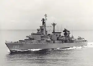 HNLMS Witte de With (F813) (Dutch: Hr.Ms. Witte de With) was a frigate of the Jacob van Heemskerck class. The ship was in service with the Royal Netherlands Navy from 1986 to 2006. The frigate was named after Dutch naval hero Witte Corneliszoon de With. The ship's radio call sign was "PAVP".[1]