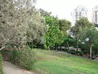 HaAliya HaShniya garden (Hebrew: גן העלייה השנייה) is an urban park in Israel, located on the Kozlovsky Hill in Givatayim. Its summit overlooks the Tel Aviv Metropolitan Area. The park, which is named after the Second Aliyah, is administered by Givatayim Municipality and is one of the oldest gardens in Israel. It covers an area of 16 hectares.