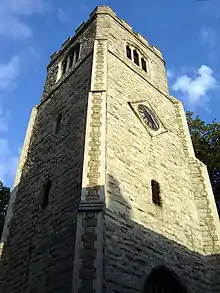 The name Hackney derives from a 5th- or 6th-century Saxon settlement known as Haca's ey – or raised ground in marshland.[4] The settlement was near Hackney Brook, and was probably on the higher ground around the later St Augustine's Tower. Hackney is not mentioned by name in the Norman Domesday Book; at that time it formed a part of the manor of Stepney.