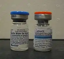 Prevention may occur by removing an egg, fertilizing it, and testing the embryo before transferring it to the uterus.[4] Treatment is by replacing the missing blood clotting factors.[3] This may be done on a regular basis or during bleeding episodes.[3] Replacement may take place at home or in hospital.[11] The clotting factors are made either from human blood or by recombinant methods.[11] Up to 20% of people develop antibodies to the clotting factors which makes treatment more difficult.[3] The medication desmopressin may be used in those with mild haemophilia A.[11] Studies of gene therapy are in early human trials.[12]