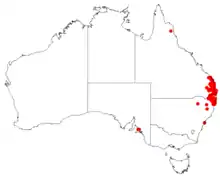 Hakea florulenta occurs in coastal areas of south-eastern Queensland and northern New South Wales from Bundaberg south to Grafton. Found growing in open forest, often associated with Melaleuca on sand or sandstone sometimes in poorly drained areas.[3]