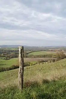 View from the Limpurg Hills near Michelbach of the Haller Plain. The Waldenburg Hills are on the left horizon