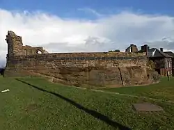 At the outbreak of the Civil War the castle was garrisoned by the Royalists under the command of Captain Walter Primrose who had been appointed by Earl Rivers. It was besieged by Roundhead Parliamentary forces under Sir William Brereton in 1643, and after several weeks' fighting, the Royalists surrendered. They regained control under Colonel Fenwick after the Parliamentarians abandoned the castle to focus on Royalist forces led by Prince Rupert. There was a second siege in 1644 but, as the fortunes of the Royalists declined elsewhere, they withdrew from Halton and the Parliamentarians under Sir William Brereton re-occupied the castle.[8] In 1646 a "Council of War" was held in Warrington where it was decided that the defences of the castles at Halton and Beeston should be dismantled. Halton Castle served no military function after this time.[10] By 1650 the castle was said to be "very ruinous".[7]