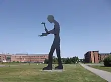 Hammering Man is a series of monumental kinetic sculptures by Jonathan Borofsky. The two-dimensional painted steel sculptures were designed at different scales (from approximately 12 feet to 49 feet high), were painted black, and depict a man with a motorized arm and hammer movement to symbolize workers throughout the world.[1] They were structurally engineered by Leslie E. Robertson Associates (LERA).