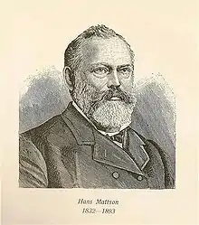 Hans Mattson (December 23, 1832, Önnestad – March 5, 1893) was a Swedish American politician. He served with distinction as a colonel in the American Civil War (1861–65) and in 1869 became the Minnesota Secretary of State. He later served as United States Consul General in India.