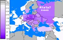 Haplogroup R1a, or haplogroup R-M420, is a human Y-chromosome DNA haplogroup which is distributed in a large region in Eurasia, extending from Scandinavia and Central Europe to southern Siberia and South Asia.[3][2]