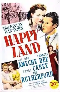 Happy Land is a 1943 film directed by Irving Pichel and starring Don Ameche. A World War II home front drama, it was based on the 1943 novel of the same name by MacKinlay Kantor.