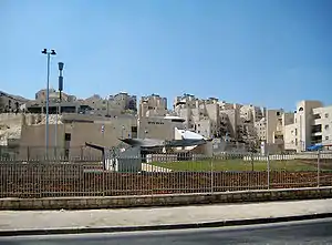 Har Homa (Hebrew: הר חומה, lit Wall Mountain), officially Homat Shmuel, is an Israeli settlement in southern East Jerusalem, near Beit Sahour.[1][2] Built on 1,850 dunams of land expropriated in 1991, it is considered an illegal Israeli settlement by much of the world,[3] although Israel disputes this.[4] The settlement is also referred to as Jabal Abu Ghneim, which is the Arabic name of the hill. One purpose given for the decision approving of its establishment was to obstruct the growth of the nearby Palestinian city of Bethlehem.[5][6]