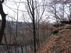 On a hill in Harmony, situated above Connoquenessing Creek sits a "seat" of stone (actually a rock formation). This seat was said to be used by Rapp (Rapp's Seat) to watch over the commune and its members in their daily lives. Thanks to local Boy Scout Troop 457 of Zelienople, a set of steps were built leading up to the seat as part of an Eagle Scout project for Christopher Van Arsdale of Harmony.[9]