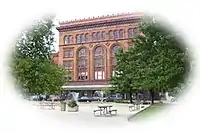 Toulmin was a pioneer patent lawyer who assisted the Wright brothers in the creation of the age of flight. In honor of the patent's centennial anniversary and the 101st anniversary of the last flight of the 1905 Wright Flyer, commemorative groups in Dayton and Springfield, Ohio on October 5, 2006,[9] distributed a commemorative booklet (see above images) and unveiled the Harry A. Toulmin Sr. Memorial Sculpture on downtown Springfield's Fountain Square, across from the restored Bushnell Building where Toulmin maintained his office.[10] The 8-foot (2.4 m) sculpture, a bronze work by artist Michael Major,[11] received a ceremonial flyover by a replica of the 1911 Wright model B.[12] The Bushnell Building is recognized as part of Ohio's National Road Scenic Byway for its being the place where Toulmin helped the Wrights acquire patents for their flying machine.[13] The Harry Toulmin Room in the Bushnell Building seats 50 people.