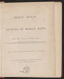 - Harry Mengden Scarth (1864). Aquae Solis: Or Notices of Roman Bath. Simpkin, Marshall, & Company.