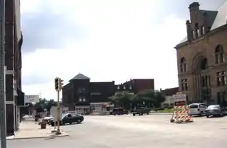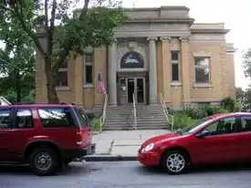 The 2009 official web site of Hartford City shows three main pictures: Civil War re-enactors, a basketball player, and the courthouse, illustrating what is important to the city and its culture. Hartford City's town square is a “living museum”, and is listed on the National Register of Historic Places as the Hartford City Courthouse Square Historic District. Many of the buildings were built during the gas boom in the late 19th century, and are examples of architectural styles used at that time, including Romanesque Revival, Commercial Italianate, Renaissance Revival, and Queen Anne.[18] The Blackford County Courthouse and First Presbyterian Church are also listed on the National Register of Historic Places.[19] Adding to the historical atmosphere, the courthouse lawn contains war monuments on each corner. The town has a small museum and library housed in the Blackford County Historical Society building.[20] The city's main public library, the Hartford City Public Library, is a Carnegie library that began with funding from Andrew Carnegie in 1903.[21]