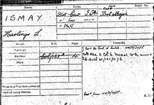 Ismay left India for Somaliland in late July 1914, and arrived on 9 August, shortly after the outbreak of the First World War in Europe.[15][16] Like other officers in Somaliland, Ismay was "unhappy at being left out of the great war"[17] and repeatedly asked for a transfer to the European front.[18] In the end, however, Ismay's superiors decided that he was "so indispensable that, despite his longing for action in Europe, he was retained in Somaliland until 1920."[14]