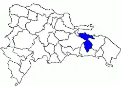 Hato Mayor (Spanish pronunciation: [ˈato maˈʝoɾ], greater cattle-raising district) is a province of the Dominican Republic. The province was split from El Seibo in 1984.