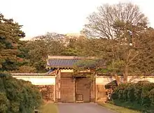 To this day, artifacts of Hanzō's legacy remain. Tokyo Imperial Palace (formerly the shōgun's palace) still has a gate called Hanzō's Gate (Hanzōmon), and the Hanzōmon subway line which runs from Hanzōmon Station in central Tokyo to the southwestern suburbs is named after the gate, where his house was once located.[15][16][17] The neighborhood outside Hanzō's Gate is known as Wakaba, but before 1943 was named Iga-chō ("Iga Town").[18] Hanzō's remains now rest in the Sainen-ji temple cemetery in Yotsuya, Tokyo. The temple also holds his favorite spear and his ceremonial battle helmet. The spear, originally 14 feet (4.3 m) long and given to him by Ieyasu, was donated to the temple by Hanzō as a votive offering, but was damaged during the bombing of Tokyo in 1945.[19]