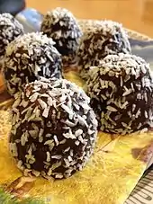 Oatmeal ball (Danish: Havregrynskugle), or Chocolate ball (Swedish: Chokladboll) is a type of unbaked pastry that is a popular Danish and Swedish confectionery.